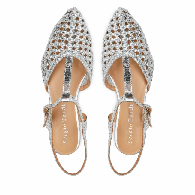 Everyday summer shoes adorned with metallic, silver elements which break up every toned-down summer outfit. Wear them with a dress, skirt or trousers and stand out from the crowd.