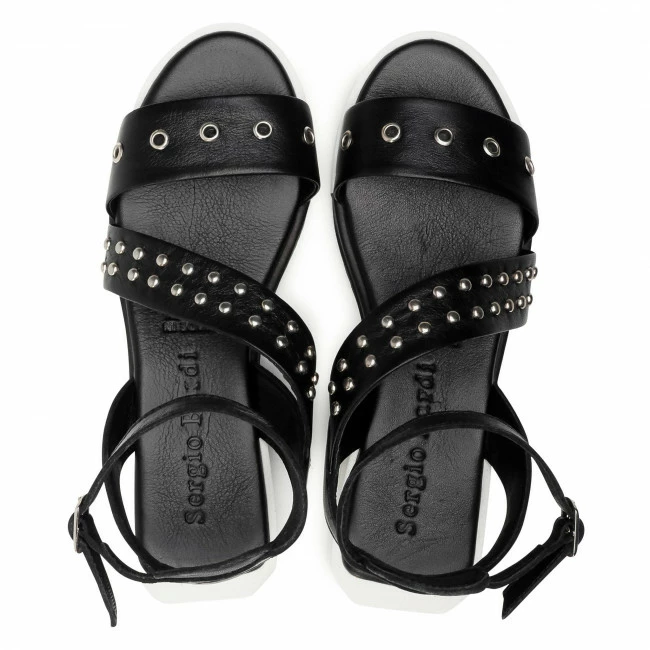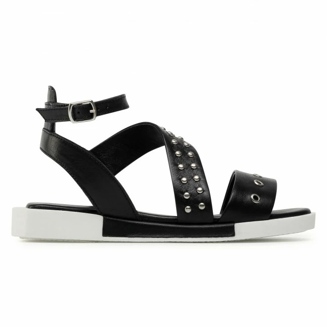 Everyday summer shoes adorned with metallic, silver elements which break up every toned-down summer outfit. Wear them with a dress, skirt or trousers and stand out from the crowd.