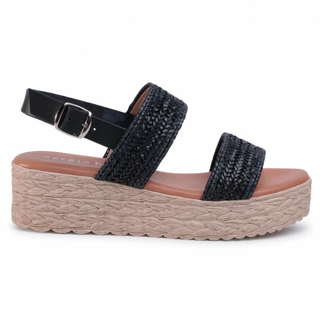These shoes have an elevation along the entire length of the sole, making them more comfortable than standard wedges. In this model you can go to the city, for a walk or shopping.